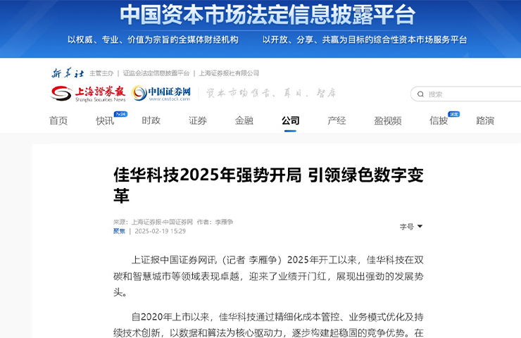上海證券報(bào) | 佳華科技2025年強(qiáng)勢(shì)開(kāi)局 引領(lǐng)綠色數(shù)字變革